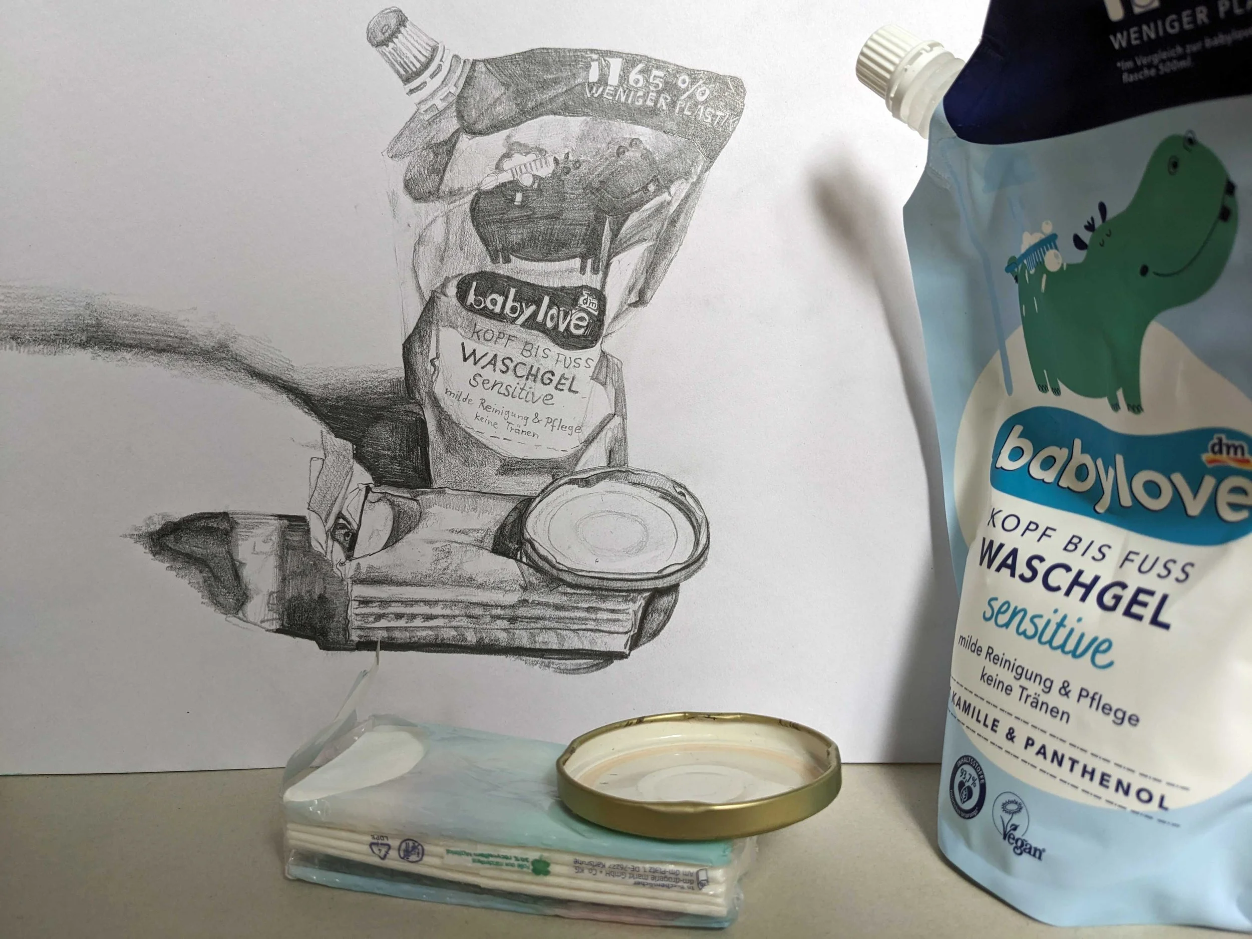 Anhand echter Gegenstände, die zu einem Stillleben drapiert werden und die sich die Teilnehmenden selber aussuchen können, sowie lebender Modelle, vermittelt die Dozentin die Grundlagen des Zeichnens: